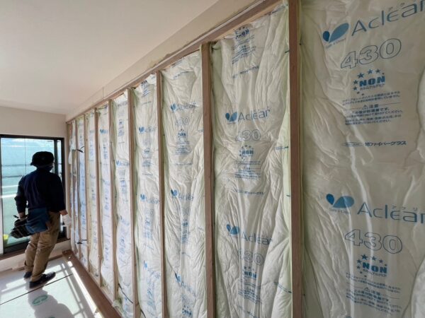 間仕切り壁に吸音目的として断熱材を充填してから、