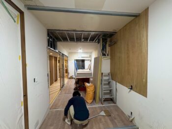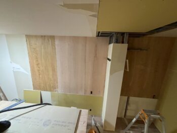 将来に備えて、ドアとは反対側の壁に補強用のベニヤ板を張りました。