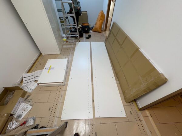 部屋を仕切る、可動式間仕切り「セフィット」を組立てます。