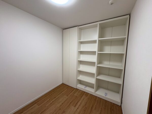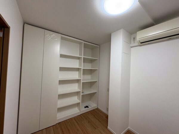部屋を分割するリフォームは、通常の間仕切り壁のほかに、セフィットのような収納棚を設置する方法もございます。